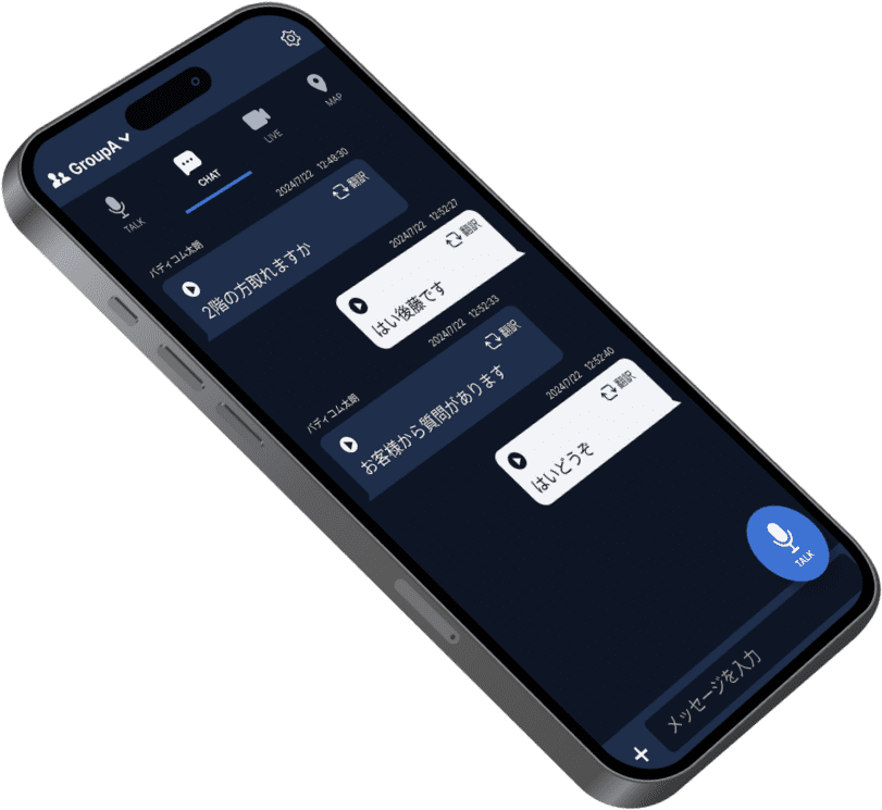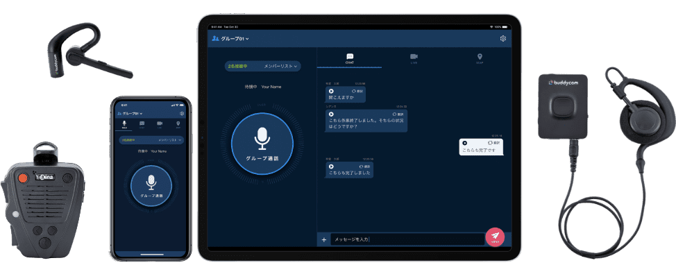 音声グループ通話ができる、スマホ IP無線アプリ(SaaSサービス)です。高音質でモバイル性に優れ、デジタルならではの機能を搭載した、新しいコミュニケーションツールです。
